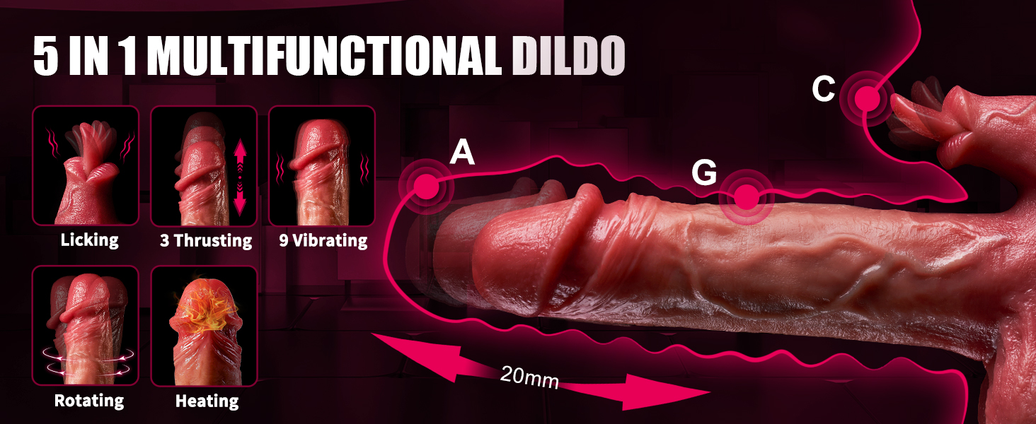 - 【5 IN 1 Multiple Stimulation Sex Toy】Compared to traditional thrusting vibrators, our thrusting dildos vibrator has been upgraded with a multi-function dildo. This dildo features 3 thrusting modes, 9 vibration modes, swing modes and heating function,will meet your different needs.The soft mini tongue dildo can stimulate the clitoris when the G-spot dildo stimulates the vagina for a dual stimulation experience.