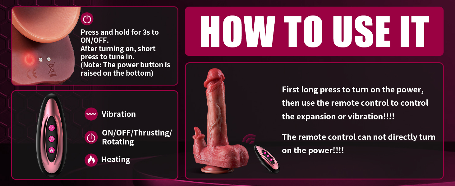 - 【Hands Free Play & Remote Control】This thrusting dildo has a powerful suction cup,you can stick it on any smooth places to unlock different positions.You also can use the remote control to switch the different modes of this adult toys, freeing up your hands for more pleasure.