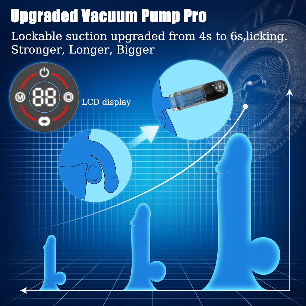 - Upgrade Male Sex Toys: By investigating the male masturbators market, we upgraded the original penis pump and upgraded the original 4s lockable vacuum pump to a 6s pump, which can produce a stronger negative pressure.At the same time, we upgraded the visual LCD display to clearly know the combination of different modes.