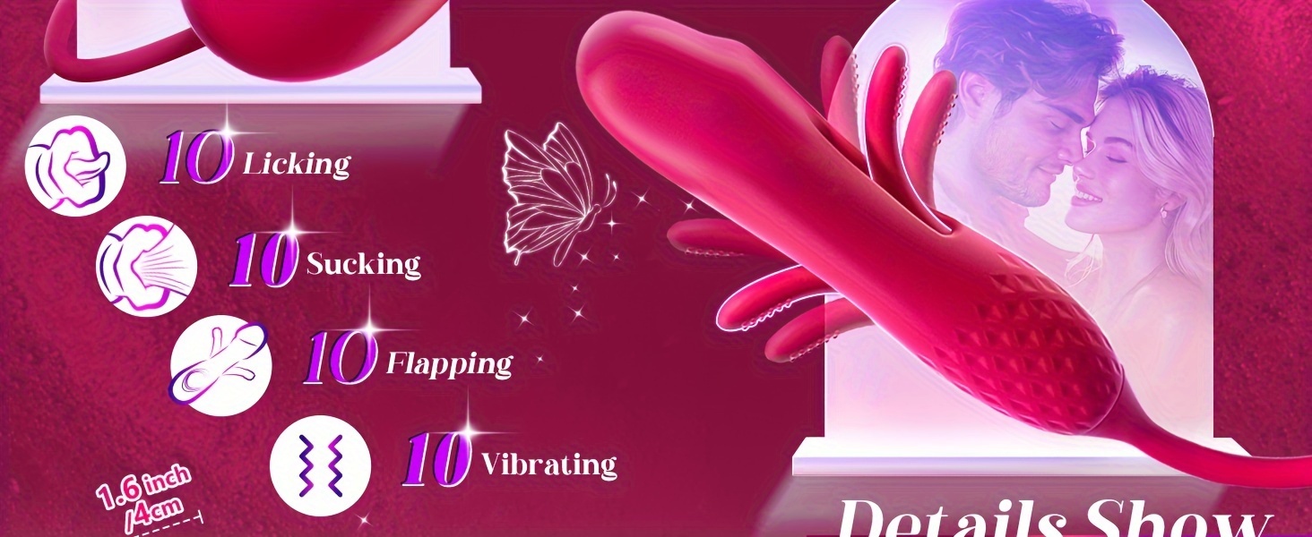 - 💋【5-in-1 Rose Toy with 10 Oral Sex Modes】The "big mouth" design of the flapping dildo vibrator has 10 different sucking modes, 10 tongue licking plus vibration modes, hits every nerve ending and the right spot. Unparalleled kissing techniques tease and please you with different licks, as your partner kisses your nipples and clitoris. You can customize your journey of pleasure and discover next-level satisfaction.