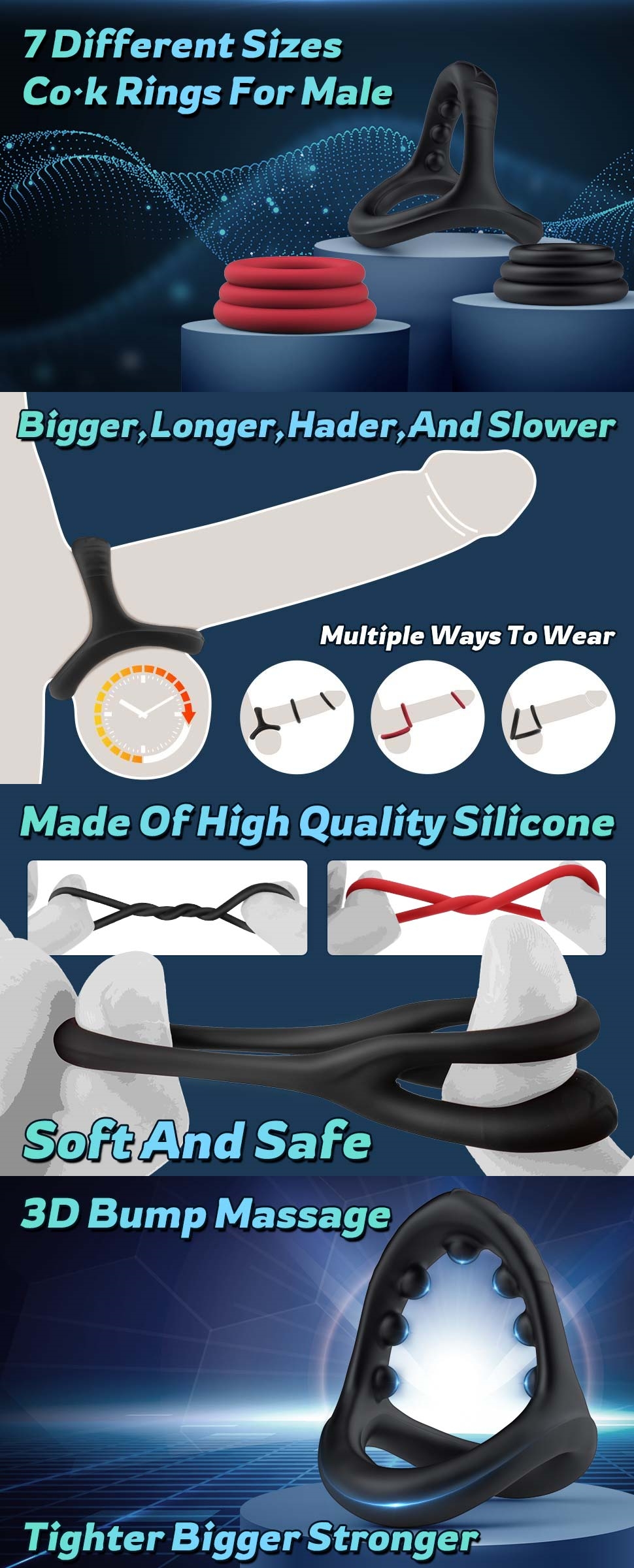 【7 Versatile Penis Rings for Custom Fit】 This set includes seven different-sized rings, allowing for multiple wearing combinations to enhance pleasure and stamina. Experiment with various placements on the penis and testicles for a personalized experience.