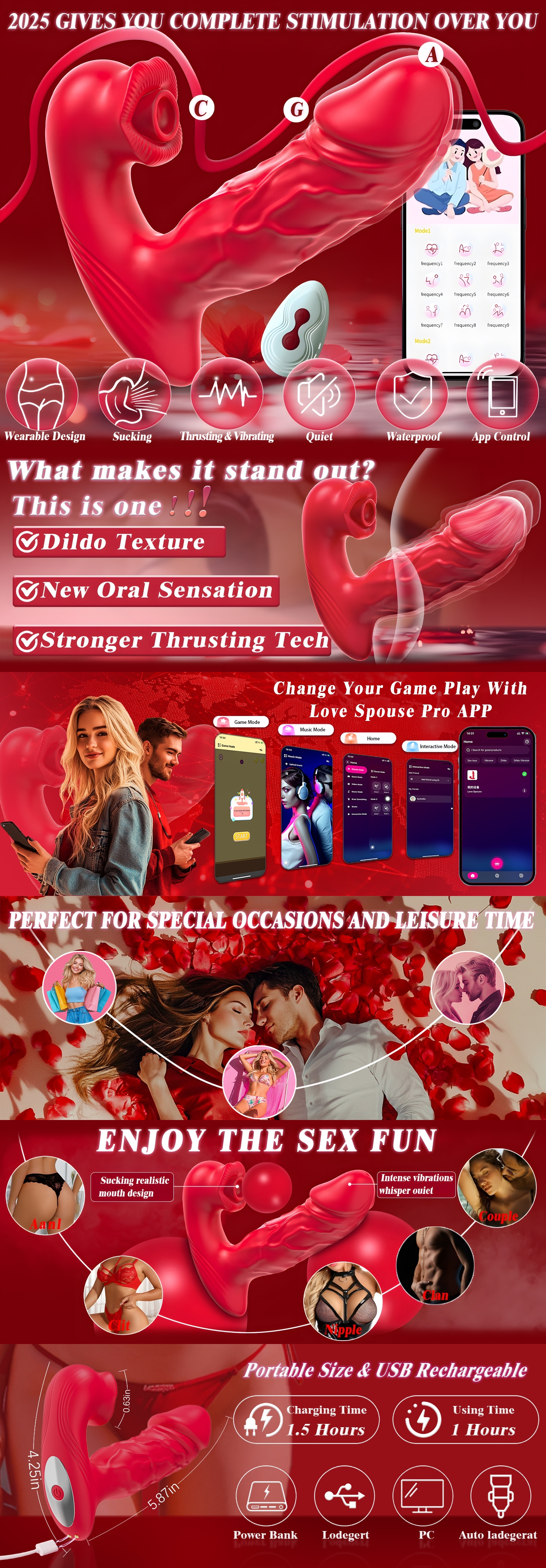 Dual Pleasure with Thrusting & Suction: Combines G-spot thrusting and clitoral suction for intense blended orgasms.